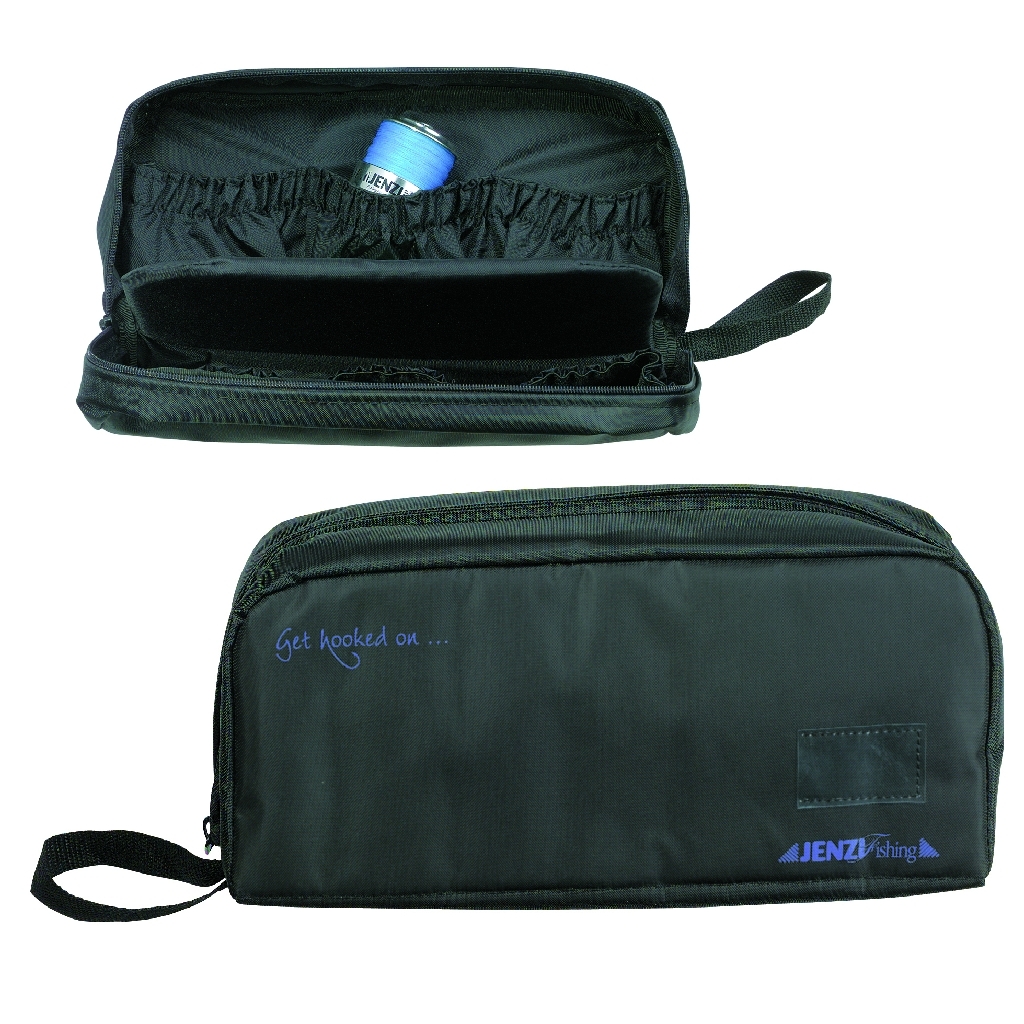Etui-Mappe für Ersatzspulen. Eines der wichtigsten Utensilien für die Brandungsangelei und Meeresangler sind die bereits fertig bespulten Ersatzspulen. Geräumiges Etui für mind. 6 Ersatzspulen. Breite und starke Innenpolsterung. Material: 100% Nylon. Maße: 35 x 10 x 17 cm