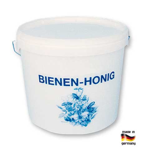 Honigeimer mit Deckel aus Kunststoff. Der Honigeimer ist dicht abschließend für eine lange Einlagerung des Honigs entsprechend des deutschen Lebensmittelrecht. Der Honigeimer ist leicht zu reinigen un leer in einander stapelbar. Die Honigeimer werden in einer stabilen Ausführung geliefert.
